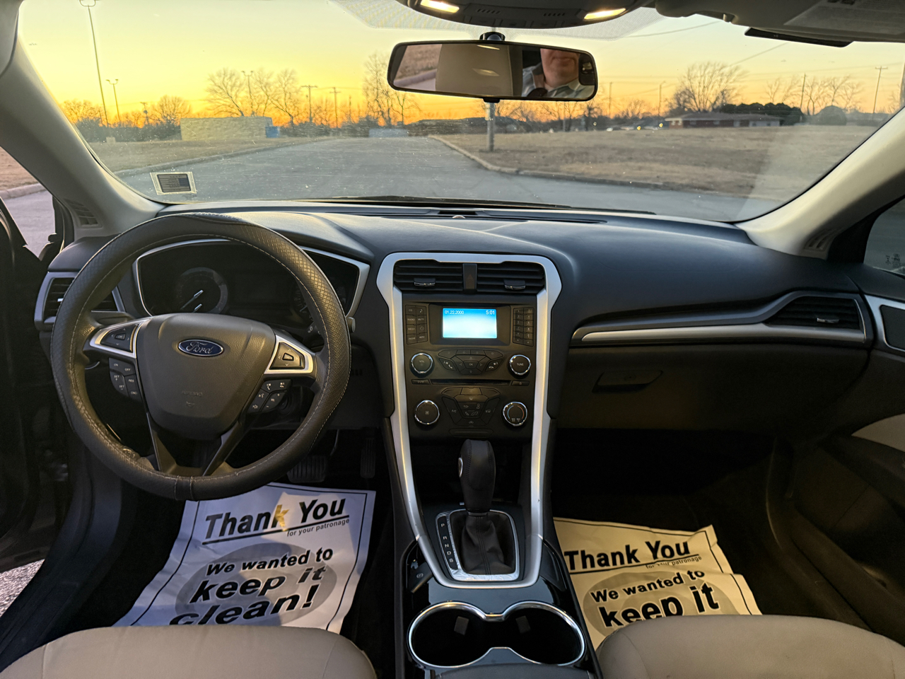 2014 Ford Fusion S with 126,400 miles. Equipped with power windows, power door locks, power mirrors, air conditioning, hands free, steering wheel controls, cruise control, CD player, Aux, USB, and tinted windows. Call or text 918-333-0444