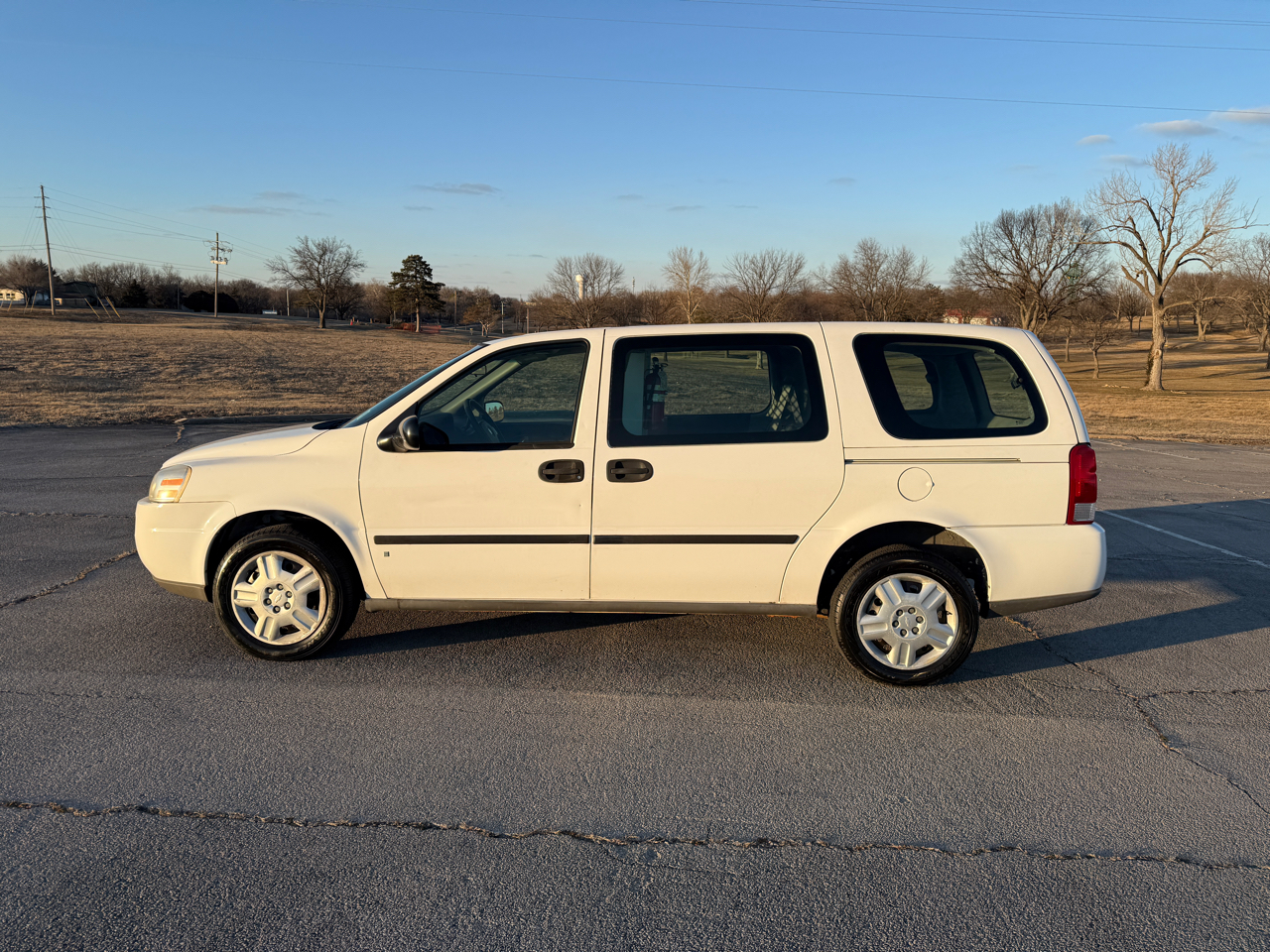 2007 Chevy Uplander cargo configuration minivan with only 72,500 miles. Equipped with 3.9L V6, power windows, power door locks, CD player, air conditioning, dual sliding side doors, and rear cargo cage. Runs and drives great but we`ve discounted this low mileage vehicle due to some hail dings that are visible mainly on the hood as you can see in the pictures. Call or text 918-333-0444
