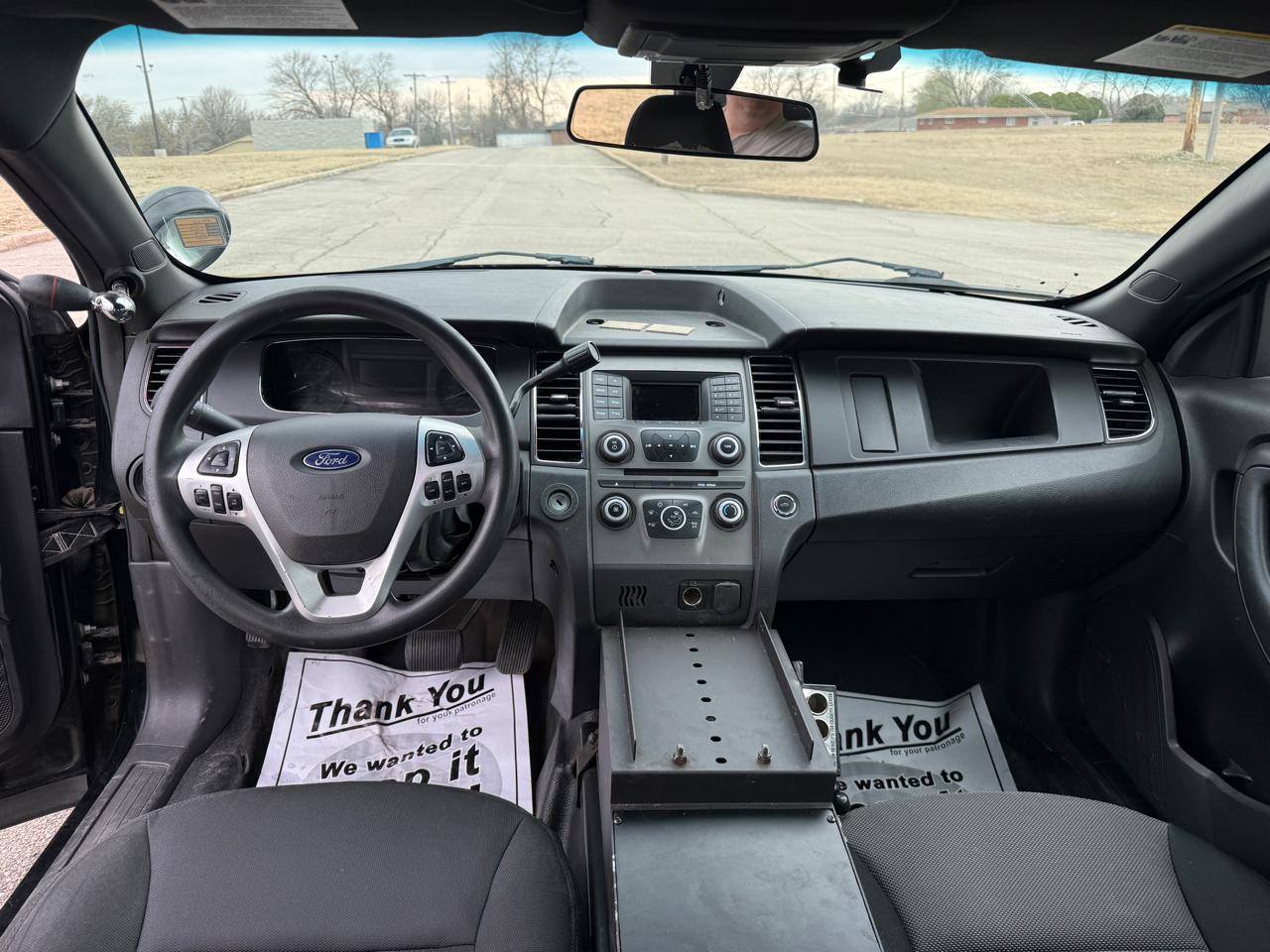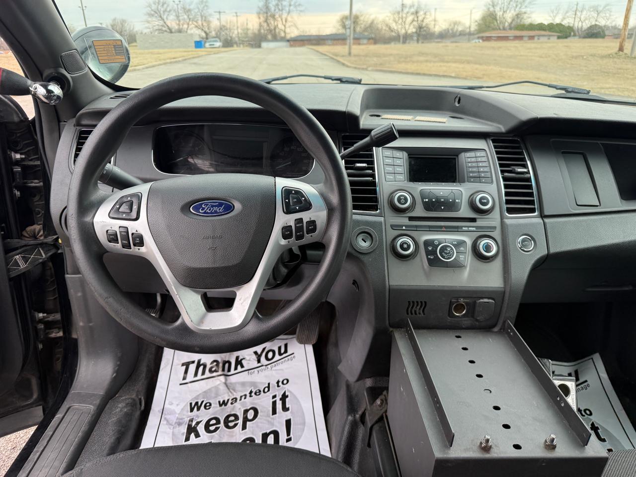 2014 Ford Taurus Police Interceptor with 124,950 miles. Equipped with 3.5L V6, power windows, power door locks, power seat, power mirrors, cruise control, steering wheel controls, CD player, Aux, USB, and air conditioning. We usually sell these with new paint at a higher price point but we decided to just offer this car at a discount like it is due to the typical scratches in the factory paint from where the police markings were removed. Call or text 918-333-0444